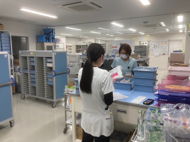 院内で使用する医薬品(内服薬・外用薬・注射薬など)の購入・払出・在庫管理を行います。注射薬は患者さまごとに一施用ずつセットする取り組みを実施し、医薬品の適正使用と安全管理に努めています。