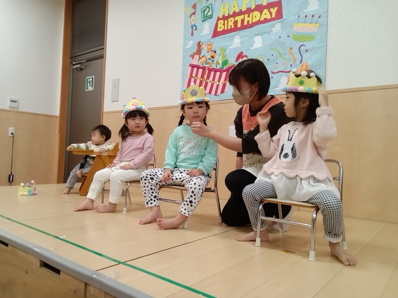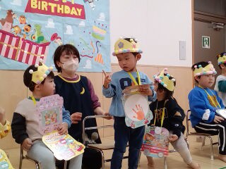 お誕生会の質問に元気に答えてくれたお誕生児さんでした。
