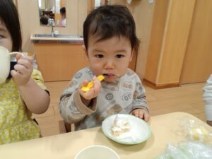そのあとは、お弁当に大喜び!とてもおいしそうに食べていました。