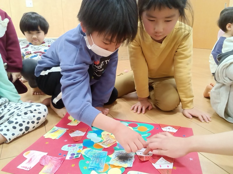 午前中、12月生まれの子たちをお祝いし、サンタさんへのお手紙を作りました。