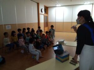 3・4・5歳児さんが花王さんの手洗い教室で手の洗い方をお勉強しました。